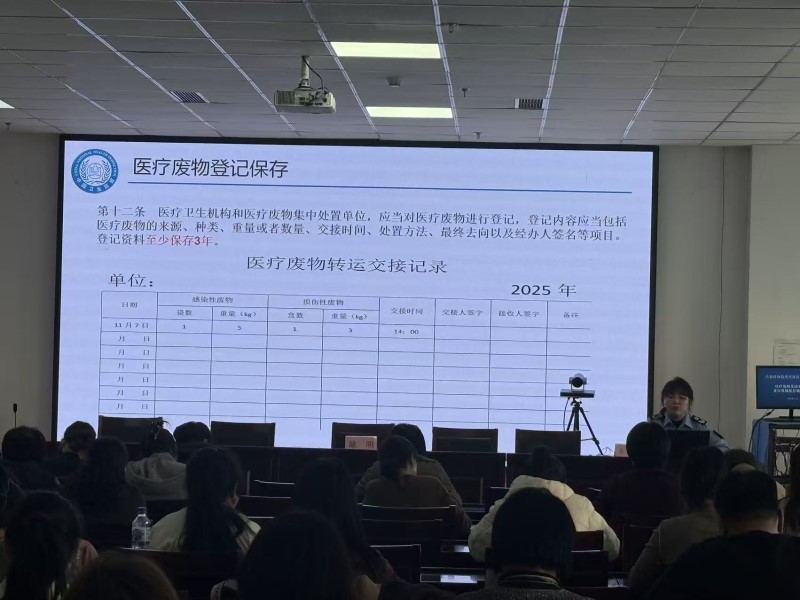 工作人员围绕“医疗机构履行强制报告制度要求”“医疗废物、医疗污水管理相关要求”两大核心模块,通过“法条解读+真实案例复盘”的方式,帮大家清晰掌握“什么情况要报告、向谁报告、怎么报告”,彻底消除“怕麻烦、怕担责”的顾虑。