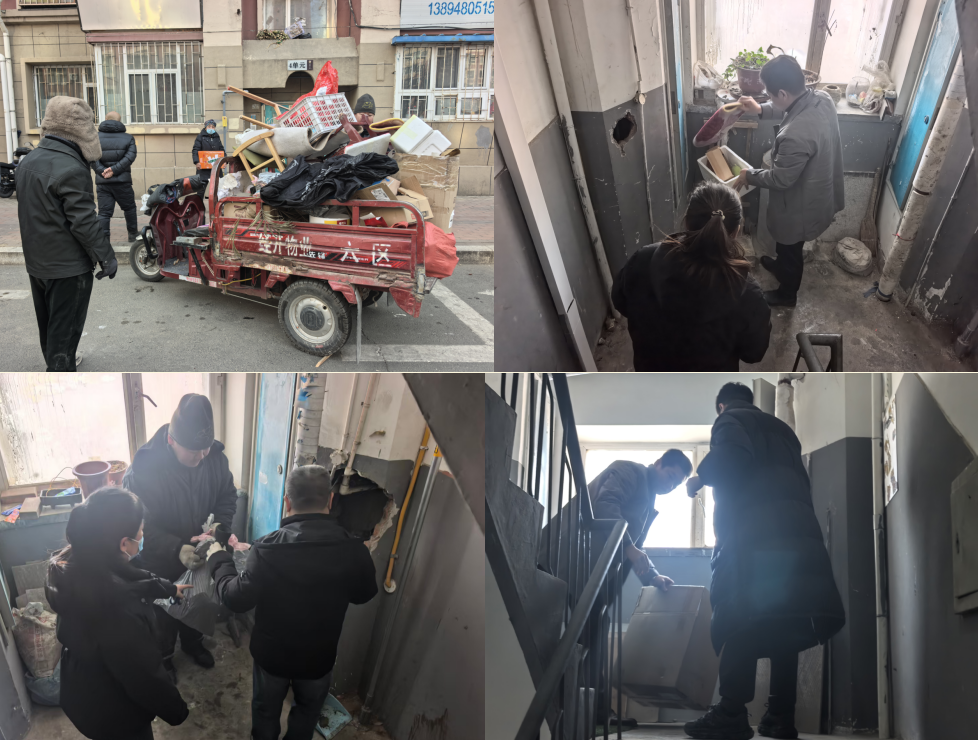 泰山社区12月14日讯(通讯、摄影:杨苏)为巩固楼道环境整治成果,消除消防安全隐患,泰山社区工作人员放弃周末休息时间,扎实开展楼道堆放物清理、清理提示张贴工作,并联合物业针对堵塞消防通道、易燃物堆积问题反弹的居民楼栋,开展重点攻坚整治行动。
