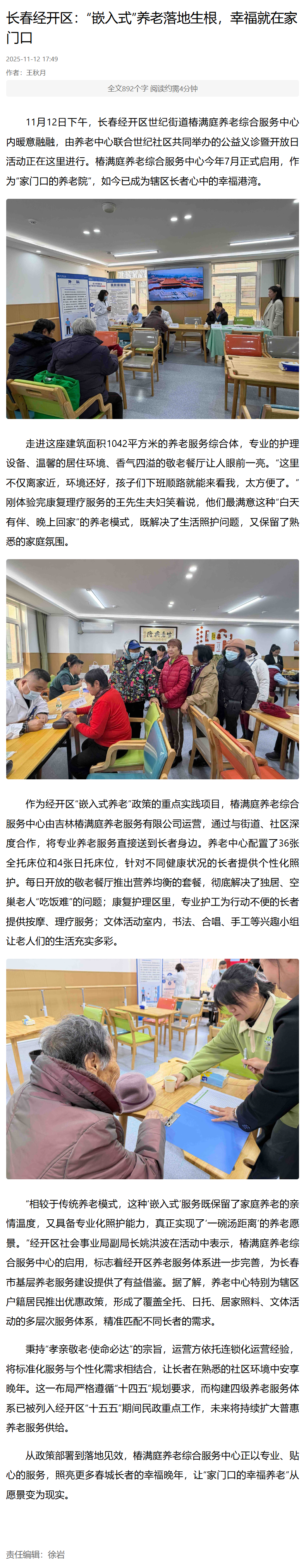 11月12日《彩练新闻》:长春经开区 “嵌入式”养老落地生根,幸福就在家门口