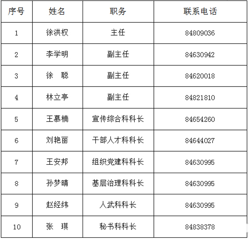 根据工作职责,党工委办公室设置:干部人才科、组织党建科、宣传综合科、基层治理科、人武科、秘书科6个职能科室和老干部管理中心1个部门所属事业单位。