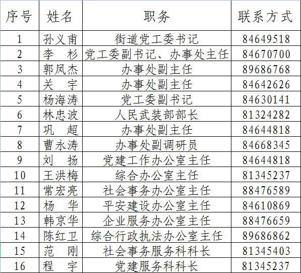 根据以上职责,设综合办公室、党建工作办公室、社会事务办公室、平安建设办公室、企业服务办公室、城市建设管理办公室、党建服务科、社会事务服务科、驻街执法大队9个职能科室。