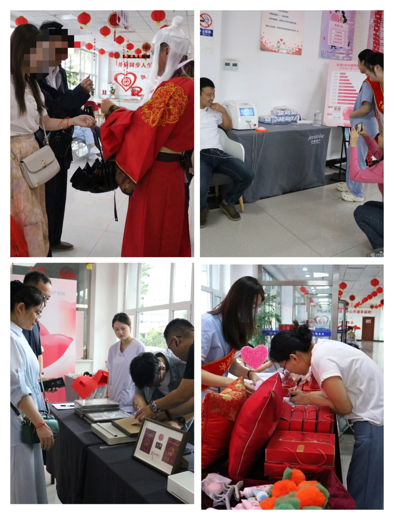 为确保各项活动有序进行,特邀经验丰富的产科专家,为新婚夫妇细心讲解“婚育健康知识”,围绕免费婚检项目、孕前优生检查及增补叶酸预防神经管缺陷、预防艾梅乙等核心知识进行分享。现场为新人建立“婚前医学检查档案”,并且增加“月老系红绳”、“无痛分娩体验”、制作结婚证相框等新颖的宣传方式,吸引新人积极参与,同时为新人提供妇科、超声、血液等“一站式”服务。