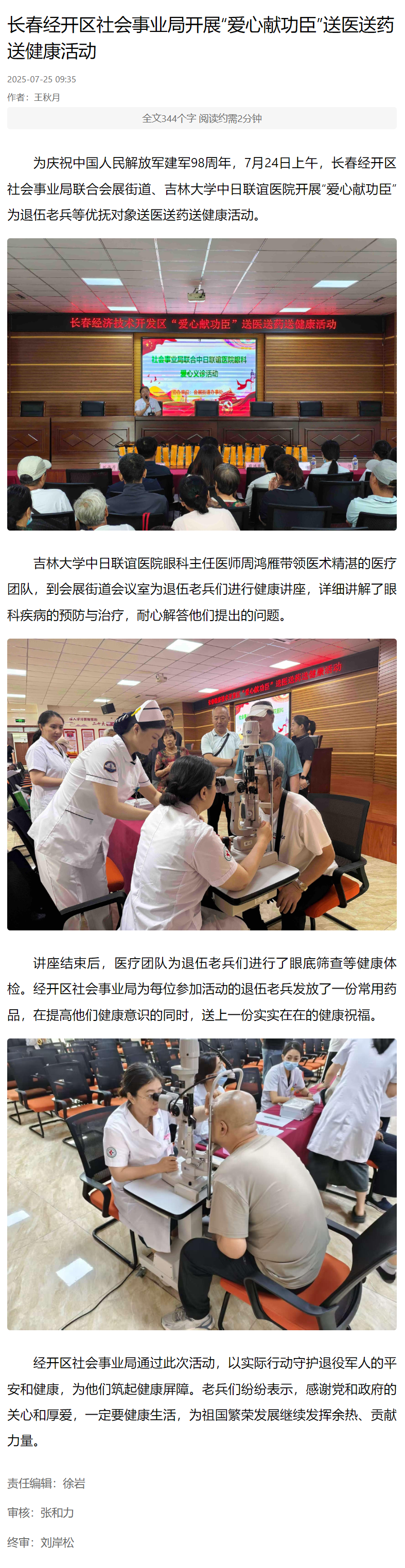 7月25日《吉林日报》:长春经开区社会事业局开展“爱心献功臣”送医送药送健康活动