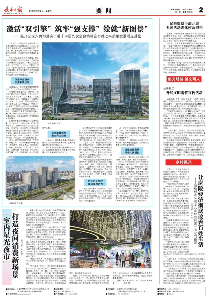 8月2日《长春日报》:激活“双引擎”筑牢“强支撑”绘就“新图景”