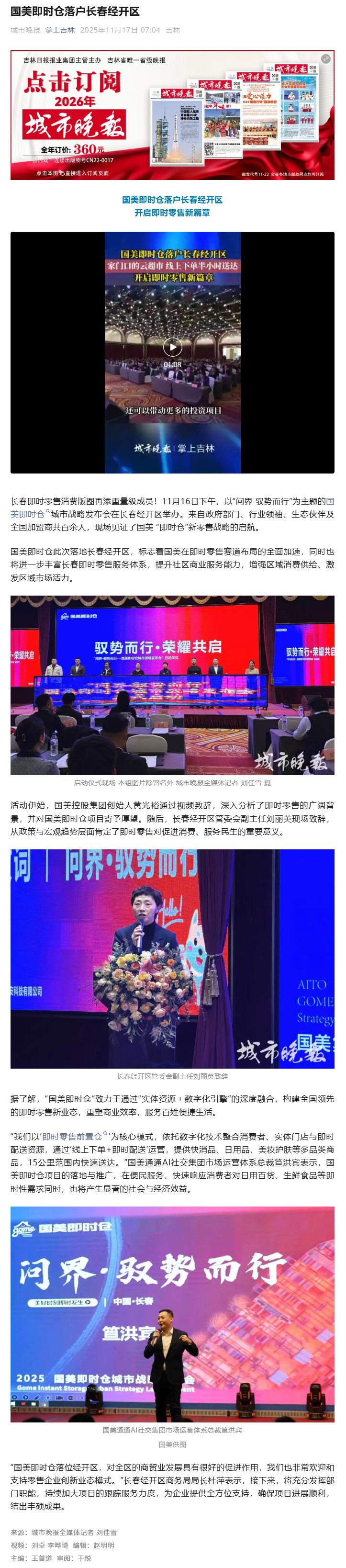 11月17日《城市晚报》:国美即时仓落户长春经开区