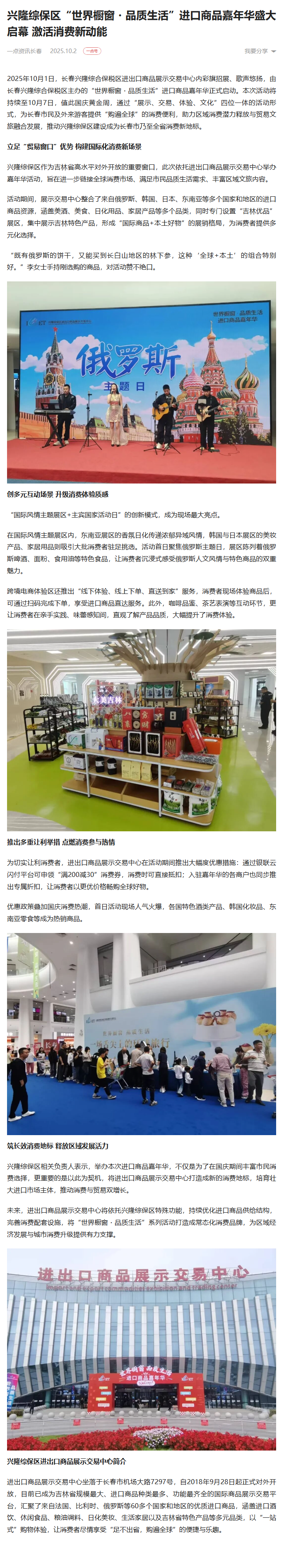 10月2日《一点资讯长春》:兴隆综保区“世界橱窗・品质生活”进口商品嘉年华盛大启幕 激活消费新动能