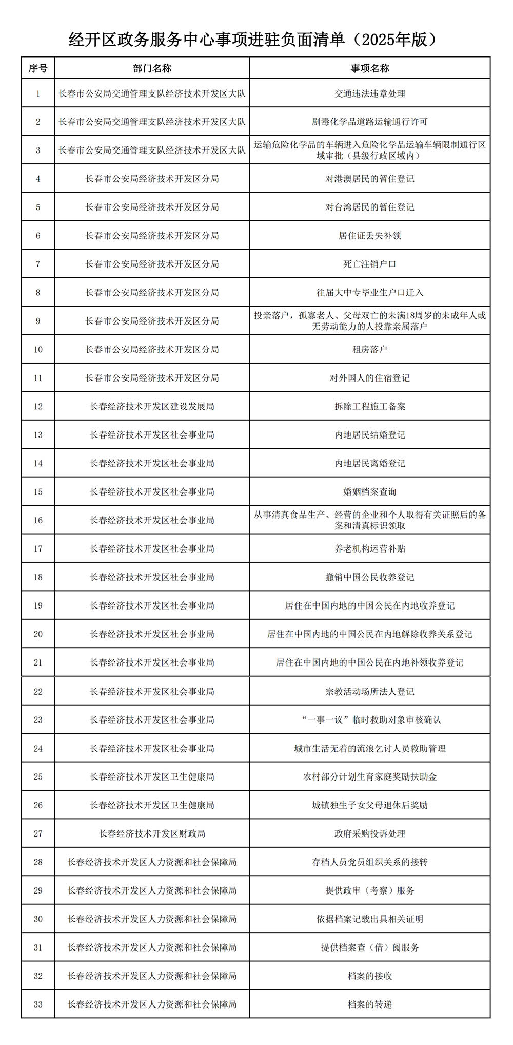 > 经开区政务服务中心事项进驻负面清单(2025年版)