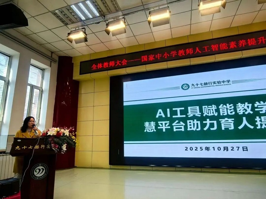 为顺应教育数字化转型趋势,经开区组织全区教学校长和教学主任参加了《中西部中小学教师人工智能素养提升专题培训》学习,参加国家培训后,学校于10月29日开展AI工具赋能教学培训的二次传导,张金川主任以《AI工具赋能教学,慧平台助力育人提质》为题给全校教师做了培训。