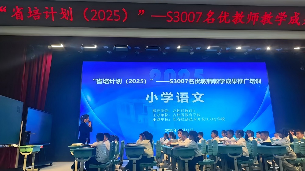 2025年11月11日下午至12日上午,“省培计划(2025)”S3007吉林省新时代中小学名师工作室教学成果推广活动在长春经济技术开发区隆重举行。活动以“教育家精神引领的名优教师教学成果展示推广”为核心主题,在长春经济技术开发区实验学校、长春九十七赫行实验中学、长春经济技术开发区力行学校、长春经济技术开发区东方广场小学、长春经济技术开发区北海幼儿园、长春经济技术开发区博远实验幼儿园6个会场同步开展。共设4个学科主会场和27个学科分会场。吉林省教育学院基础教育教师发展中心项目执行负责人姜旭、任佳,长春经济技术开发区教师进修学校常务副校长金敬红全程参与活动。经开区400余名教学领导和教师参与现场听课研讨。